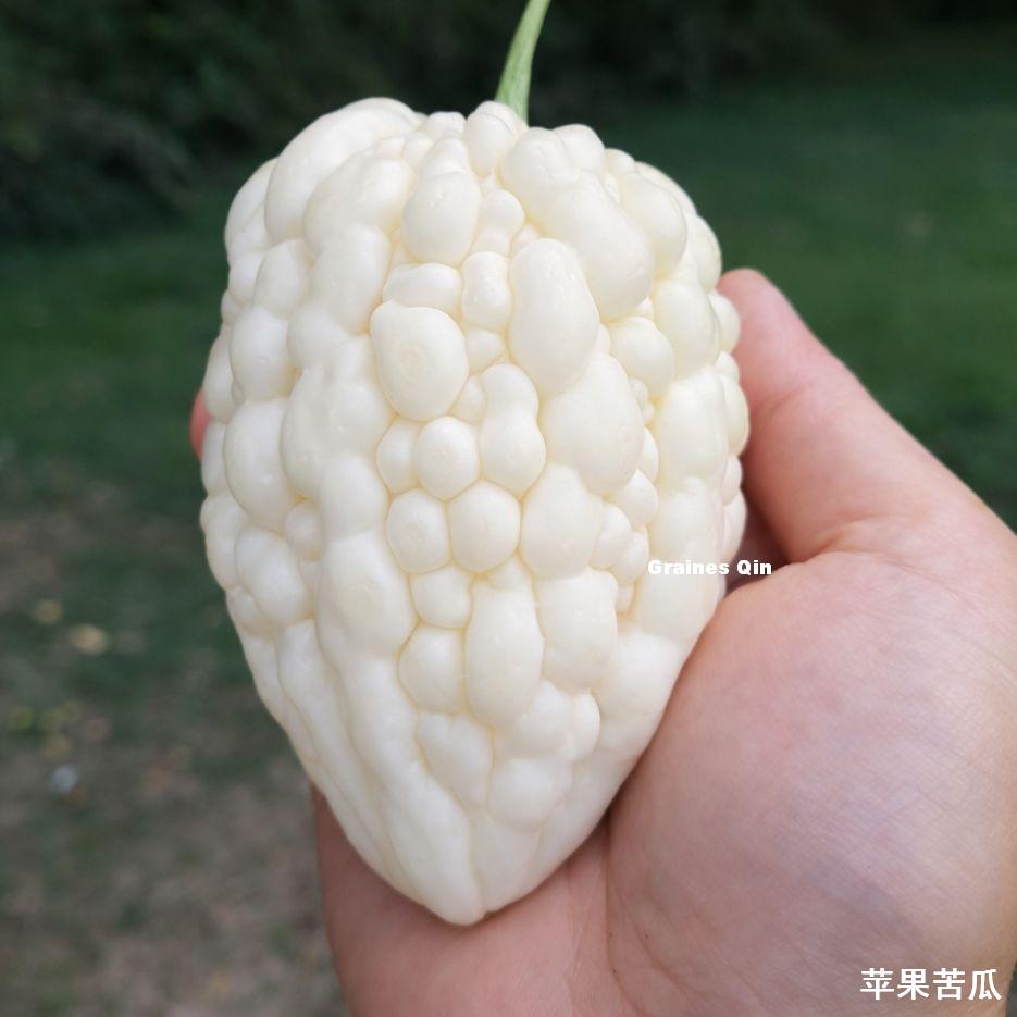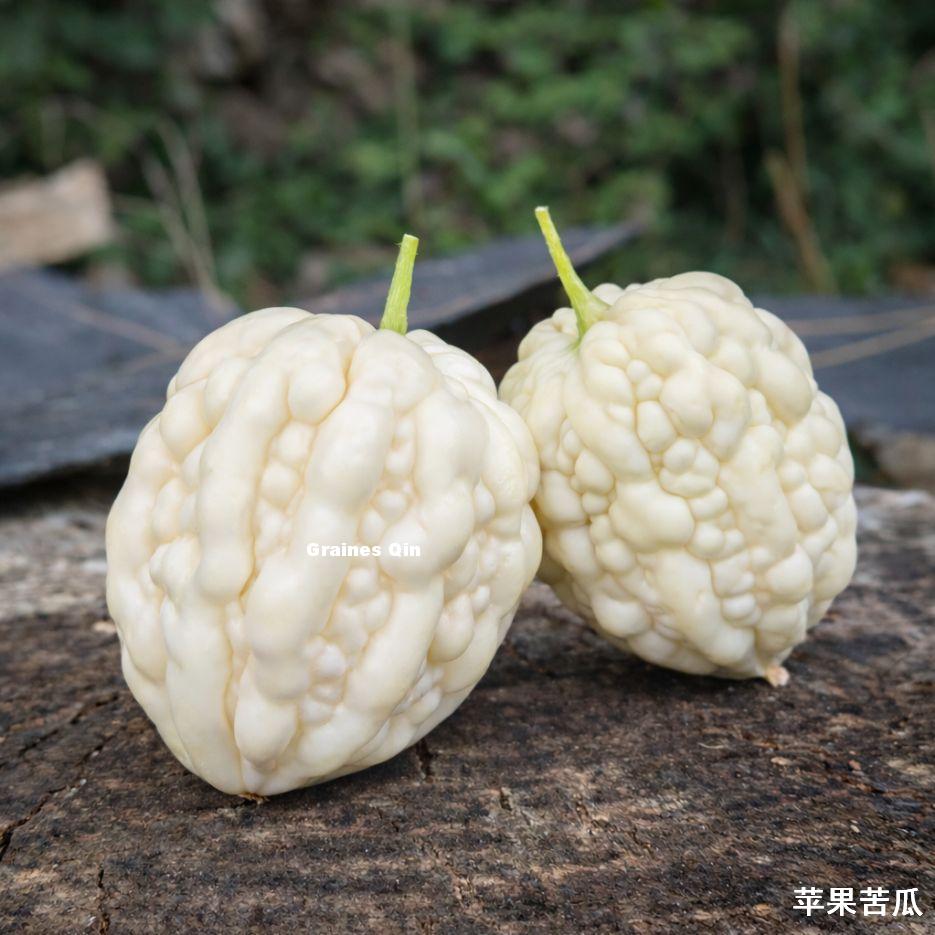 La margose blanche Pomme d’Amour est une variété rare et particulièrement originale. Elle se distingue par ses fruits en forme de coeur, dotés d’une peau blanche et brillante, couverte de petites perles irrégulières. Sa chair, croquante, juteuse et légèrement sucrée, est plus dense et moins amère que celle des variétés classiques.