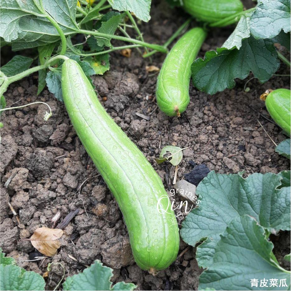 Le melon de Chine Qingpi Caigua est une variété ancienne à vigueur modérée et à forte capacité de ramification. Elle produit des fruits longs et cylindriques, de couleur vert foncé, à peau lisse, fine et brillante, ornée de 8 à 10 stries longitudinales vert clair bien marquées.
